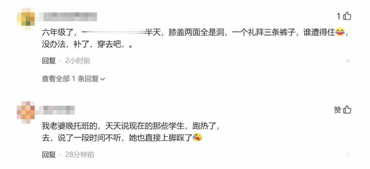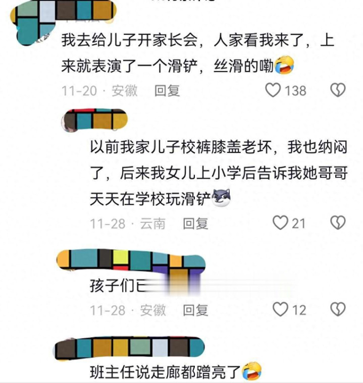 有家长在一又友圈发了张相片,说自家孩子降服腋下老是黑魆魆的,若何洗也洗不掉,其后才发现这孩子用腋窝夹着楼梯扶手,从四楼一直滑到一楼,这事一出来,下面的探究就吵杂起来,很多家长齐说我方家孩子也干过肖似的事,像是跪在地上滑行、在走廊里跑得连忙、把铅笔灰抹在裤子上,齐是课间常见的行为,还有东说念主开打趣说这叫“三年事染布”,衣着洗不干净是常有的事。